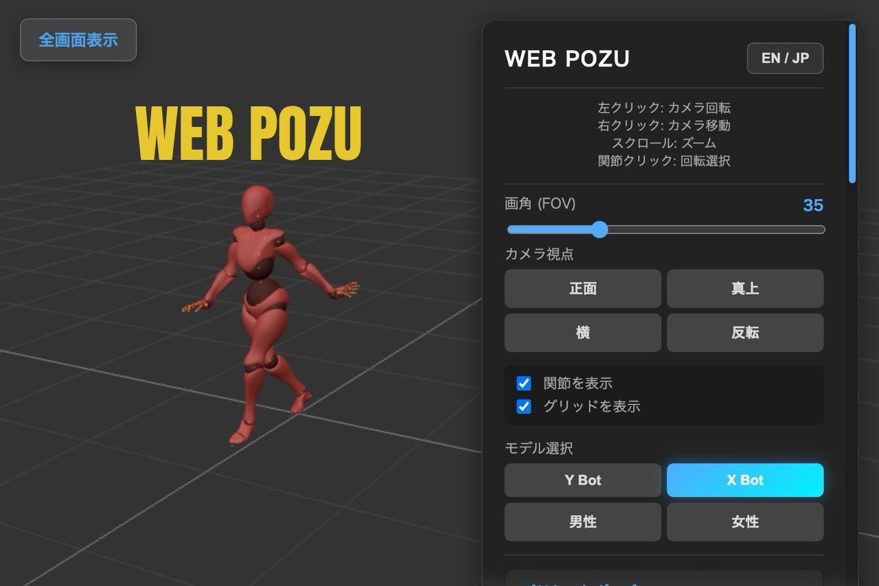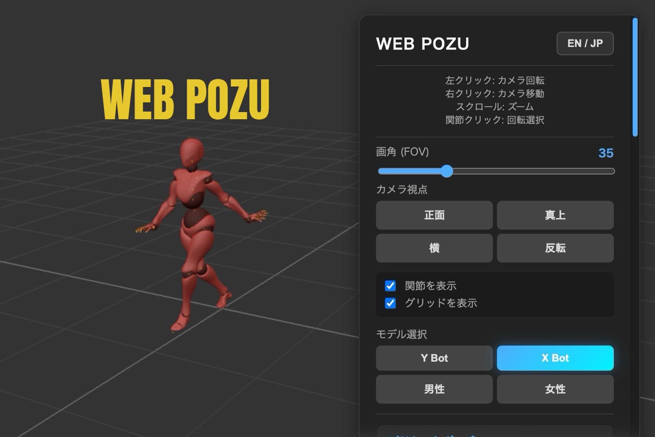 WEB POZUは、創作活動を支援するためのブラウザ専用3Dデッサン人形アプリです。